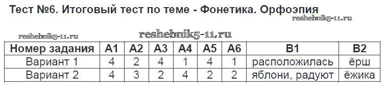 Готовая домашняя работа с ответами по Русскому языку за 5 класс Селезнева Контрольно-измерительные материалы (КИМ) Экзамен 2014 ФГОС - Тесты 6