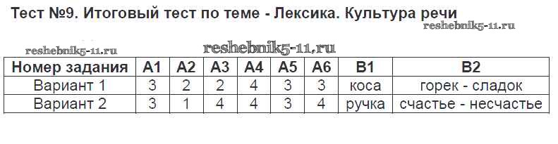 Готовая домашняя работа с ответами по Русскому языку за 5 класс Селезнева Контрольно-измерительные материалы (КИМ) Экзамен 2014 ФГОС - Тесты 9