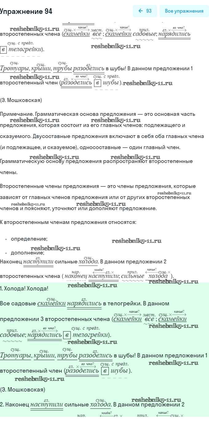 Готовая домашняя работа с ответами по Русскому языку за 5 класс Янченко, Латфуллина, Михайлова Рабочая тетрадь Часть 1, 2 Просвещение 2019 ФГОС - Часть 1 (Упражнения) 94