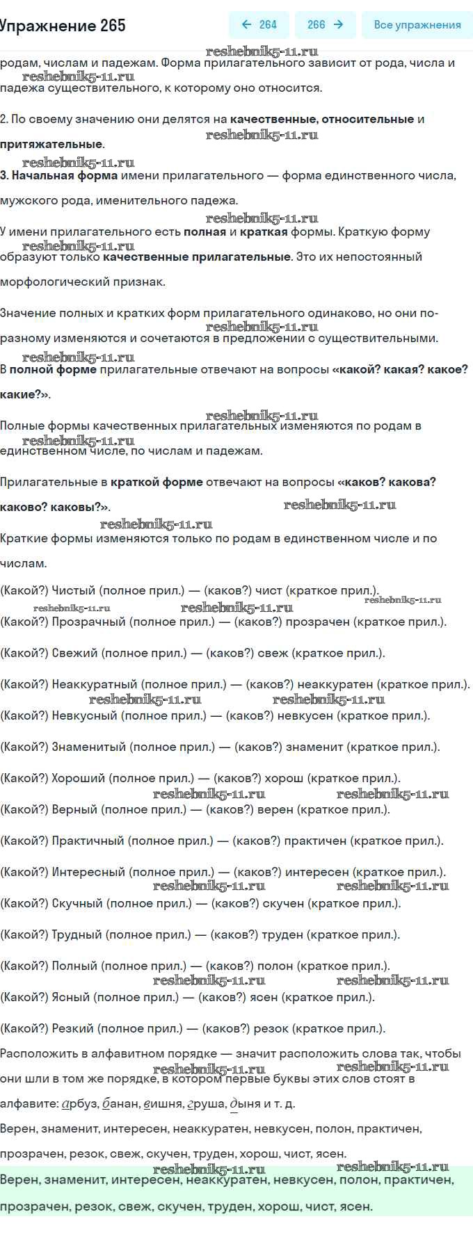 Готовая домашняя работа с ответами по Русскому языку за 5 класс Янченко, Латфуллина, Михайлова Рабочая тетрадь Часть 1, 2 Просвещение 2019 ФГОС - Часть 2 (Упражнения) 265