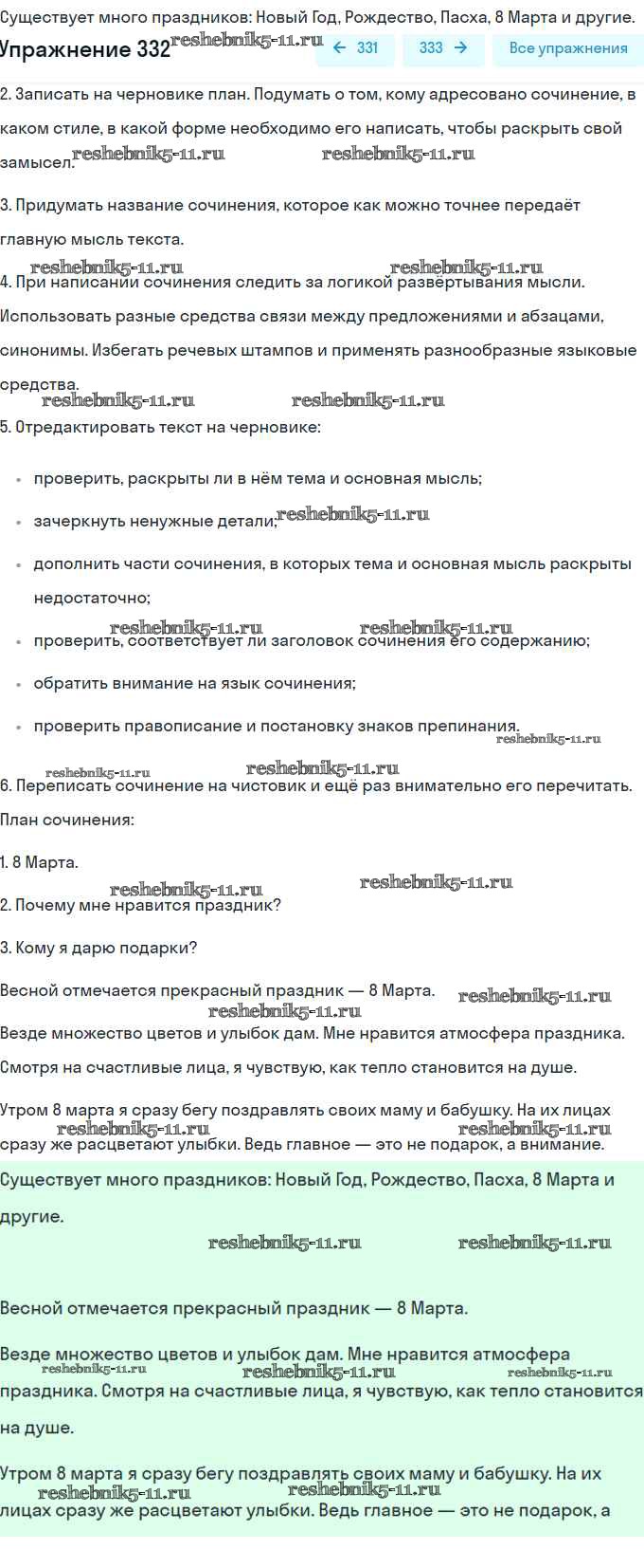 Готовая домашняя работа с ответами по Русскому языку за 5 класс Янченко, Латфуллина, Михайлова Рабочая тетрадь Часть 1, 2 Просвещение 2019 ФГОС - Часть 2 (Упражнения) 332