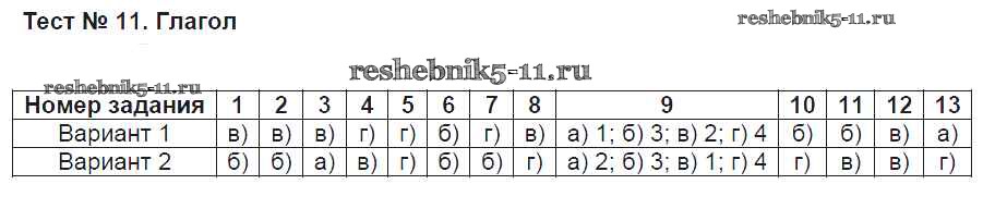 Готовая домашняя работа с ответами по Русскому языку за 5 класс Каськова Тематические тесты УМК Просвещение 2016 ФГОС - Тесты 11