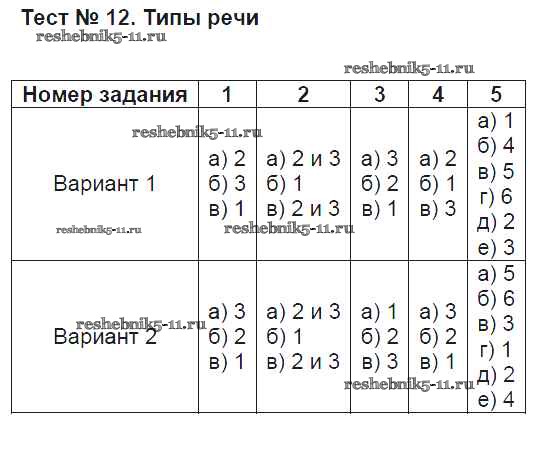 Готовая домашняя работа с ответами по Русскому языку за 5 класс Каськова Тематические тесты УМК Просвещение 2016 ФГОС - Тесты 12