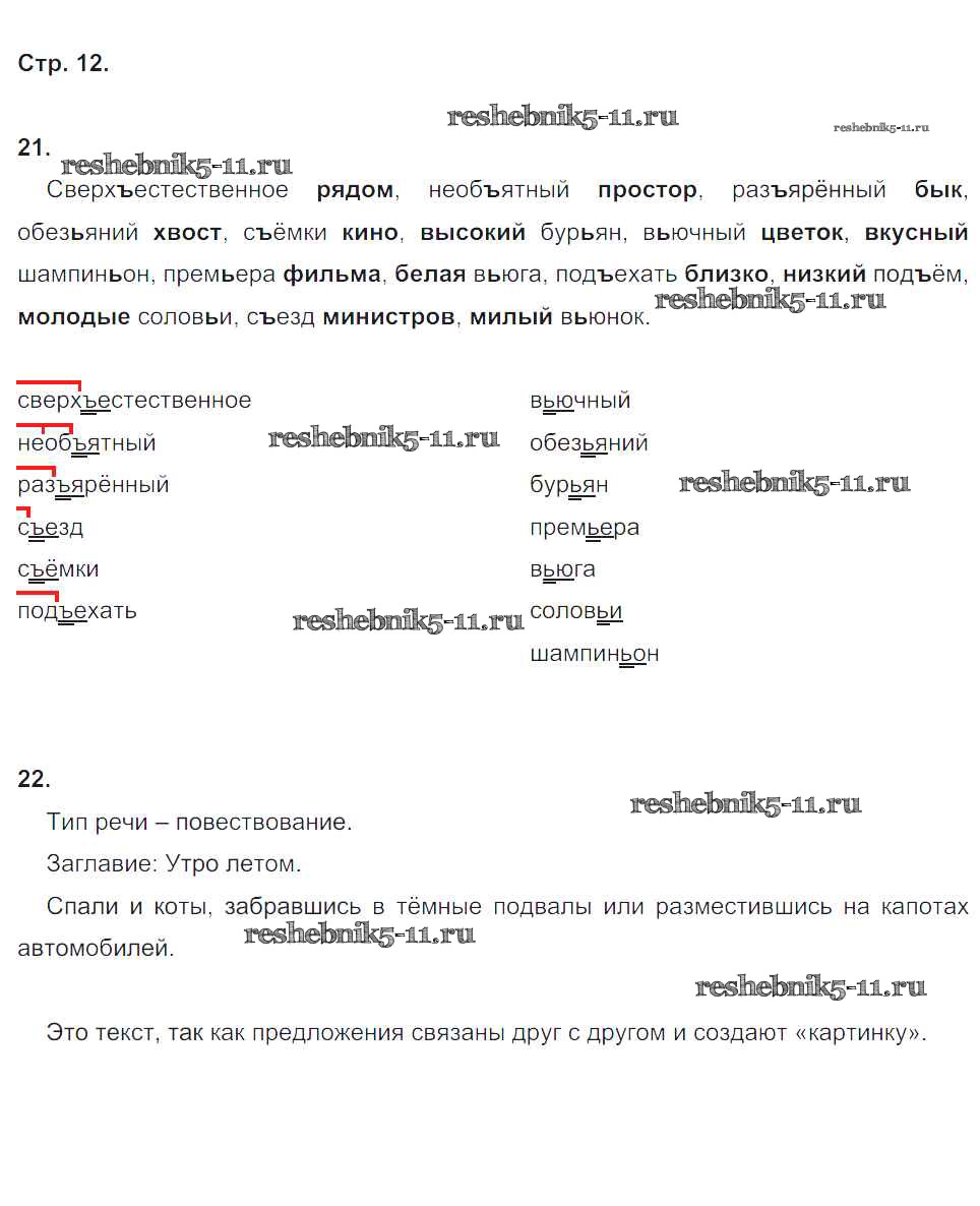 Готовая домашняя работа с ответами по Русскому языку за 5 класс Ефремова Рабочая тетрадь УМК Просвещение 2012 ФГОС - Страницы 12