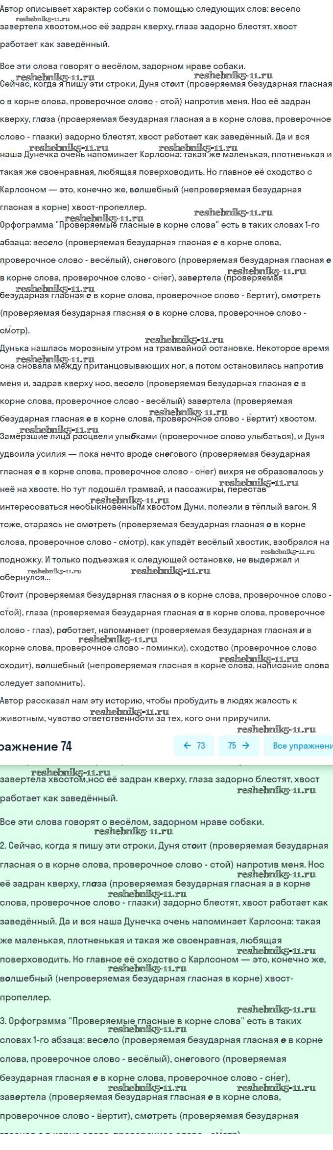 Готовая домашняя работа с ответами по Русскому языку за 5 класс Рыбченкова, Александрова, Глазков Учебник Просвещение 2019 ФГОС - Часть 1 74