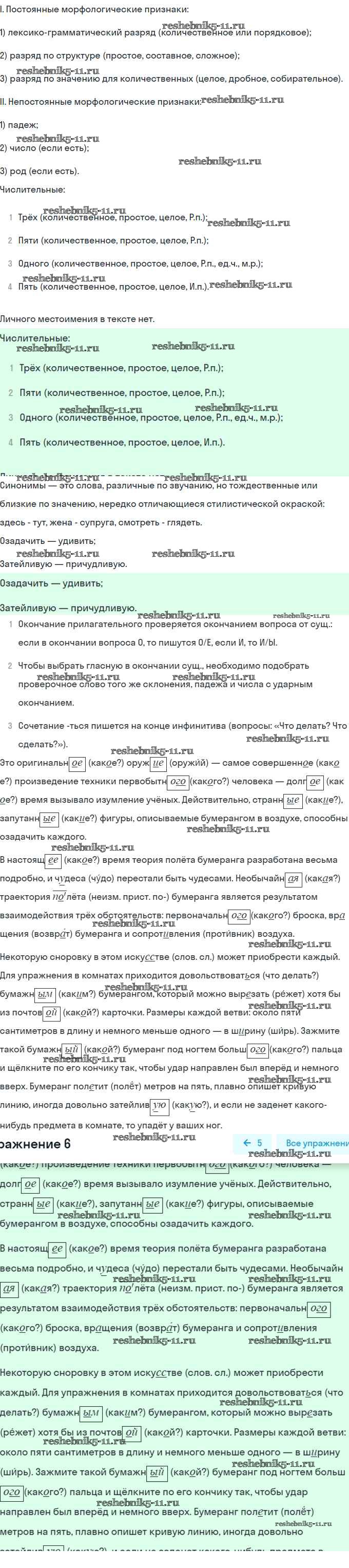 Решебник / часть 2 / повторение по теме «Морфология» / 6