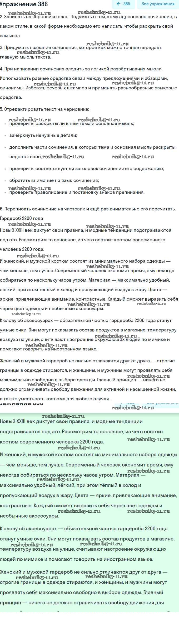 Готовая домашняя работа с ответами по Русскому языку за 5 класс Рыбченкова, Александрова, Глазков Учебник Просвещение 2019 ФГОС - Часть 2 386