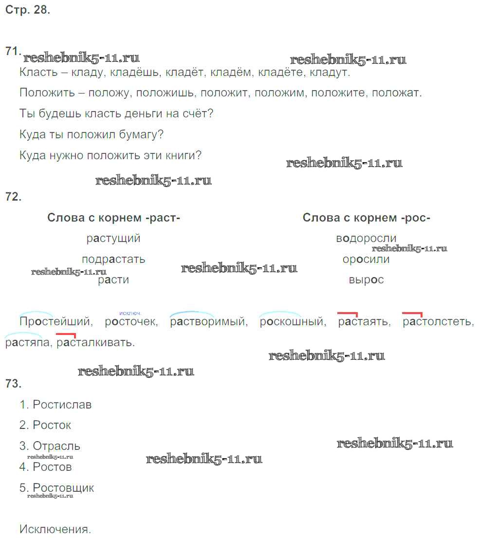 Готовая домашняя работа с ответами по Русскому языку за 5 класс Ларионова Рабочая тетрадь УМК Дрофа 2019 ФГОС - Страницы 28