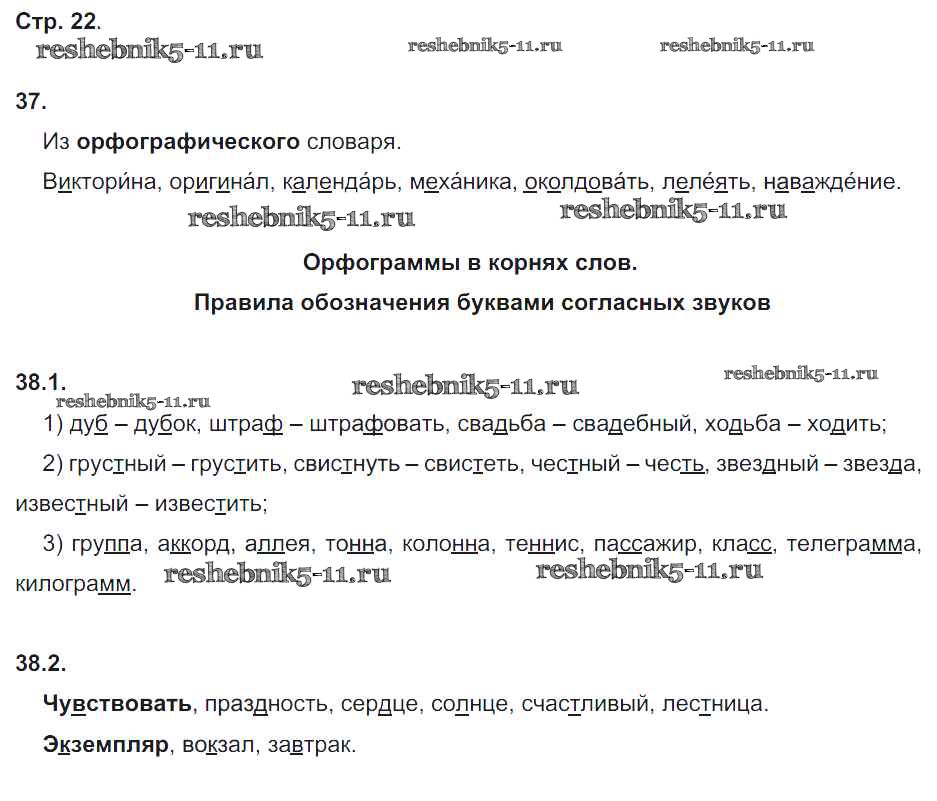 Готовая домашняя работа с ответами по Русскому языку за 5 класс Львов Рабочая тетрадь УМК Часть 1, 2 Экзамен 2016 ФГОС - Часть 1. Страницы 22