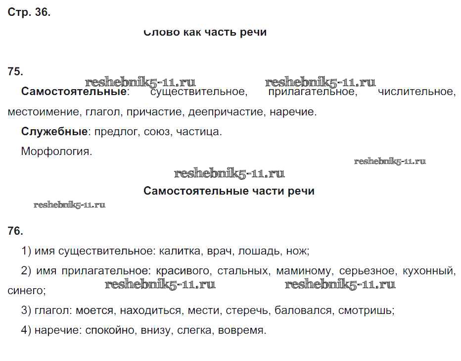 Готовая домашняя работа с ответами по Русскому языку за 5 класс Львов Рабочая тетрадь УМК Часть 1, 2 Экзамен 2016 ФГОС - Часть 1. Страницы 36