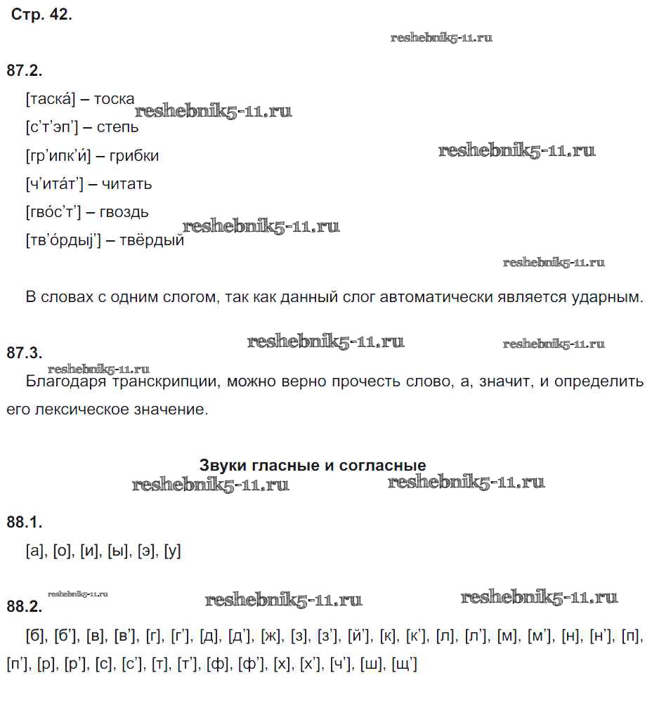 Готовая домашняя работа с ответами по Русскому языку за 5 класс Львов Рабочая тетрадь УМК Часть 1, 2 Экзамен 2016 ФГОС - Часть 1. Страницы 42
