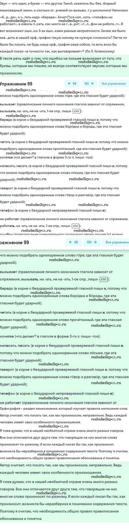 Готовая домашняя работа с ответами по Русскому языку за 5 класс Шмелёв, Флоренская, Габович Учебник Алгоритм успеха Часть 1, 2 Вентана-граф 2022 ФГОС - Глава 1 99