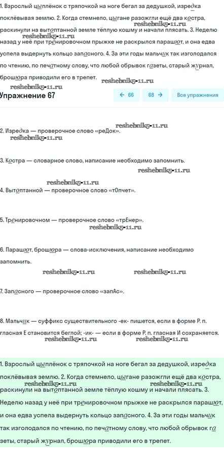 Готовая домашняя работа с ответами по Русскому языку за 5 класс Шмелёв, Флоренская, Габович Учебник Алгоритм успеха Часть 1, 2 Вентана-граф 2022 ФГОС - Глава 2 67