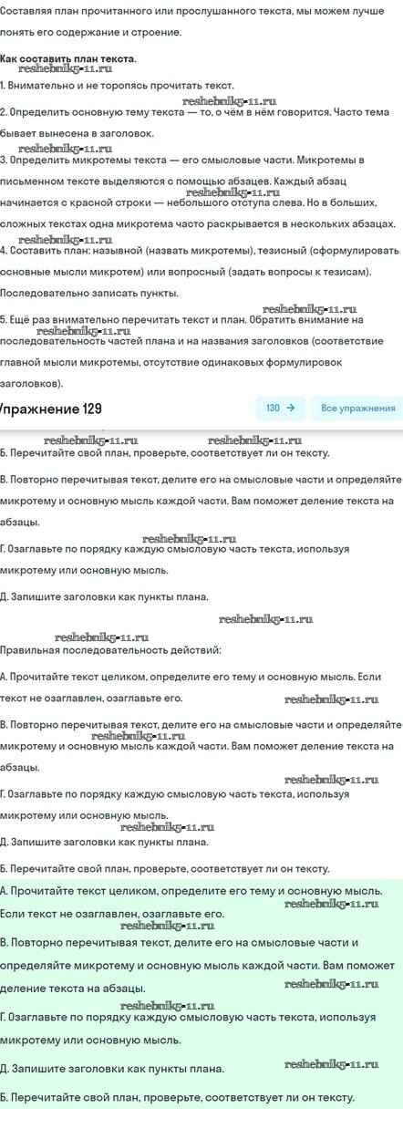 Готовая домашняя работа с ответами по Русскому языку за 5 класс Шмелёв, Флоренская, Габович Учебник Алгоритм успеха Часть 1, 2 Вентана-граф 2022 ФГОС - Глава 3 129