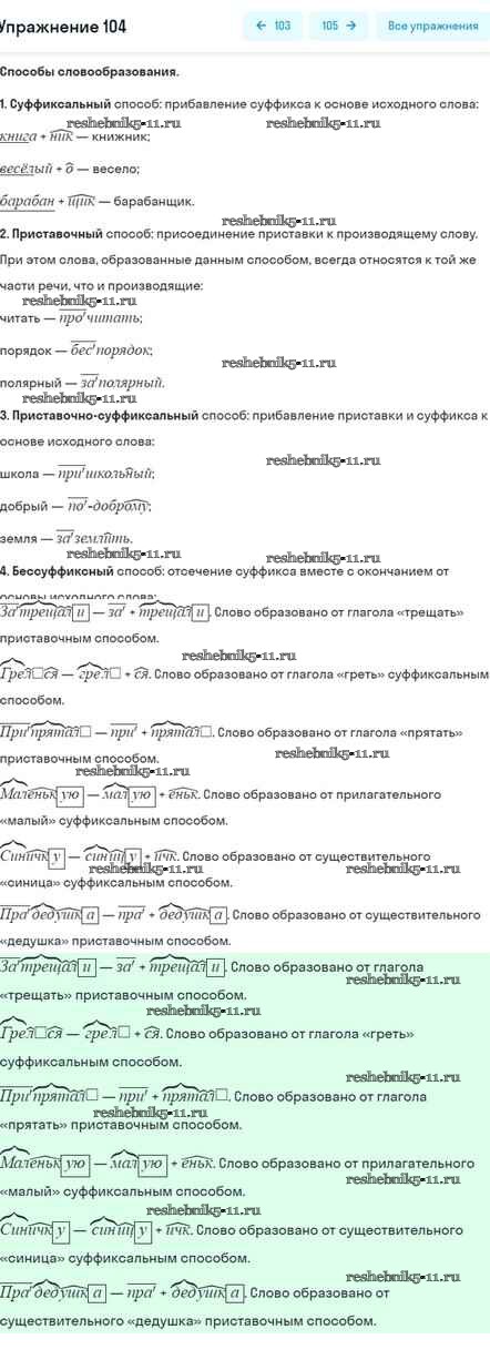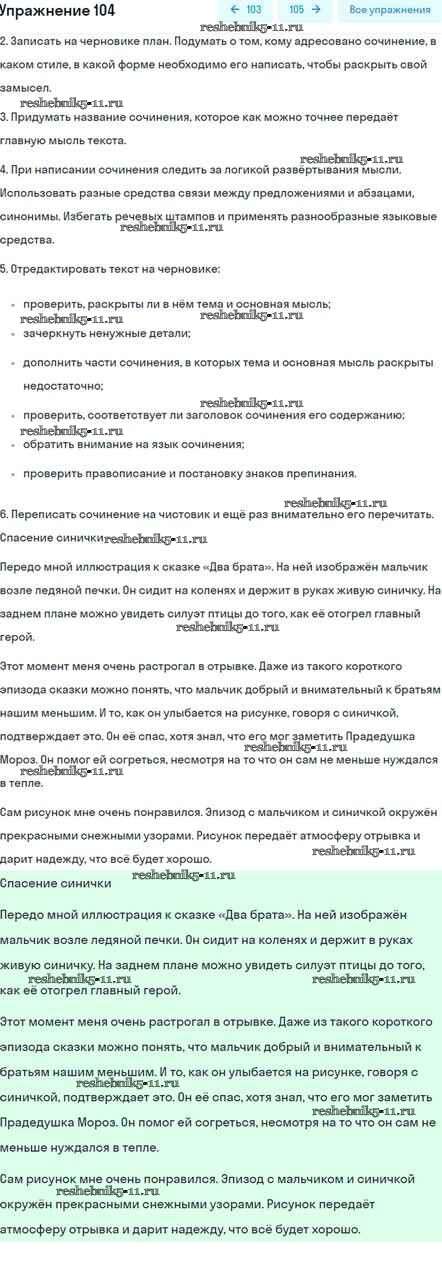 Готовая домашняя работа с ответами по Русскому языку за 5 класс Шмелёв, Флоренская, Габович Учебник Алгоритм успеха Часть 1, 2 Вентана-граф 2022 ФГОС - Глава 4 104