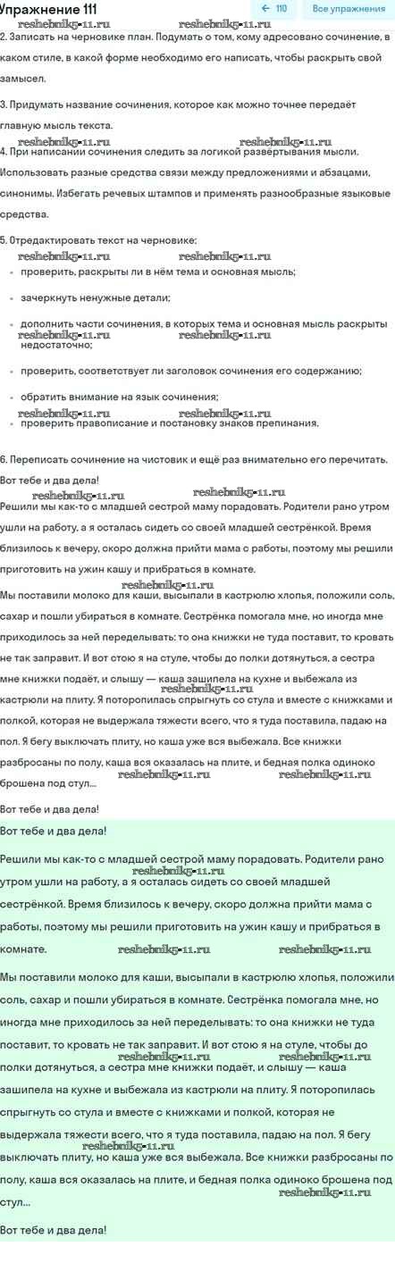 Готовая домашняя работа с ответами по Русскому языку за 5 класс Шмелёв, Флоренская, Габович Учебник Алгоритм успеха Часть 1, 2 Вентана-граф 2022 ФГОС - Глава 5 111