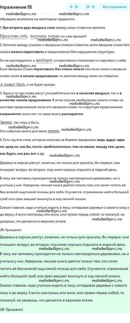 Готовая домашняя работа с ответами по Русскому языку за 5 класс Шмелёв, Флоренская, Габович Учебник Алгоритм успеха Часть 1, 2 Вентана-граф 2022 ФГОС - Глава 5 55
