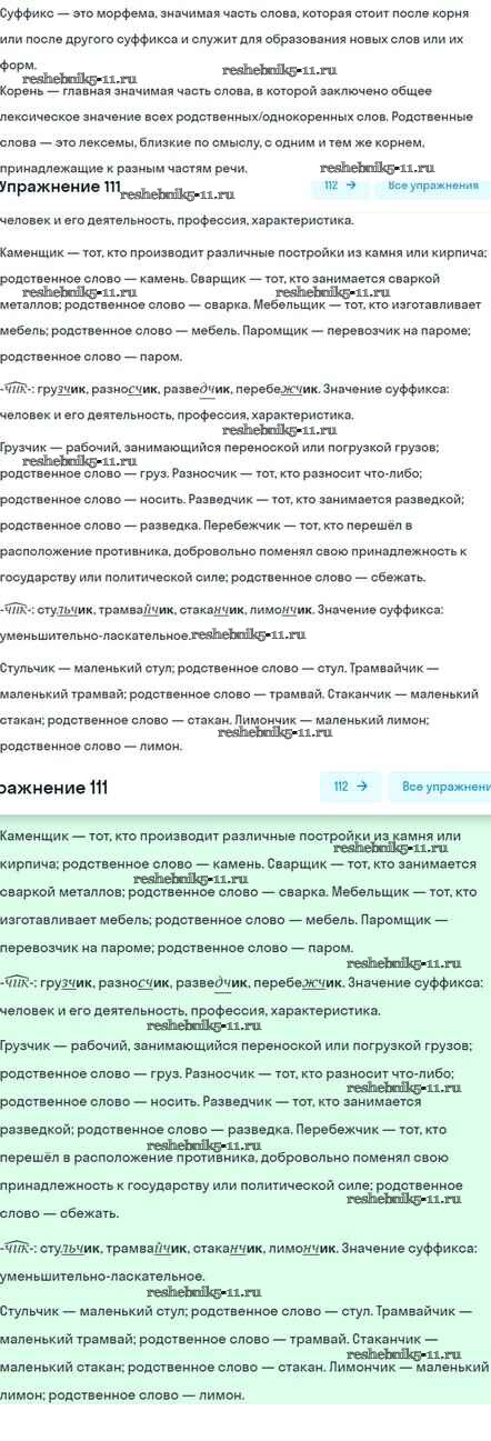 Готовая домашняя работа с ответами по Русскому языку за 5 класс Шмелёв, Флоренская, Габович Учебник Алгоритм успеха Часть 1, 2 Вентана-граф 2022 ФГОС - Глава 6 111