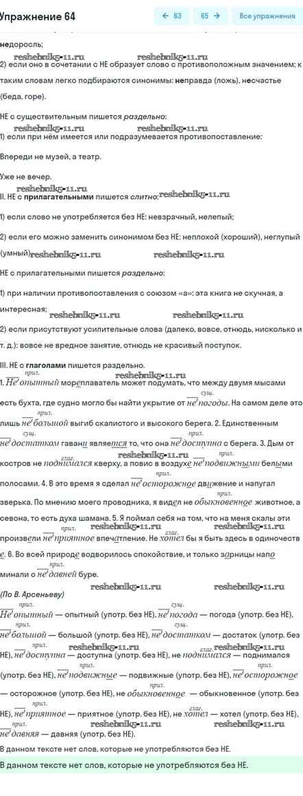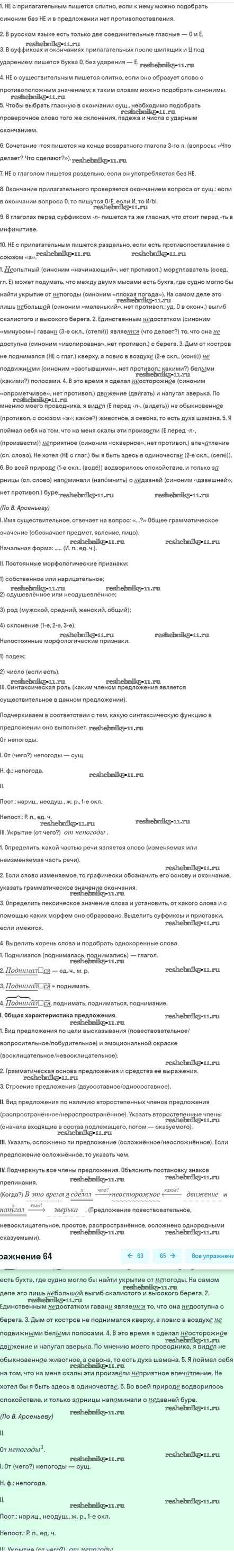 Готовая домашняя работа с ответами по Русскому языку за 5 класс Шмелёв, Флоренская, Габович Учебник Алгоритм успеха Часть 1, 2 Вентана-граф 2022 ФГОС - Глава 7 64