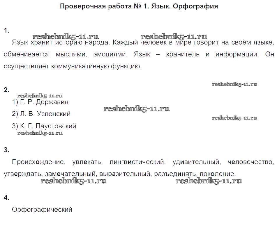 Готовая домашняя работа с ответами по Русскому языку за 5 класс Львов Тетрадь для оценки качества знаний Дрофа 2014 ФГОС - Проверочные работы 1