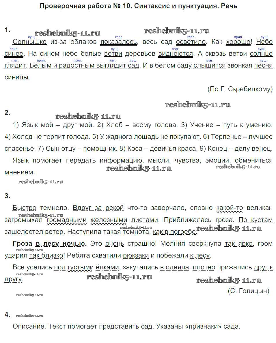 Готовая домашняя работа с ответами по Русскому языку за 5 класс Львов Тетрадь для оценки качества знаний Дрофа 2014 ФГОС - Проверочные работы 10