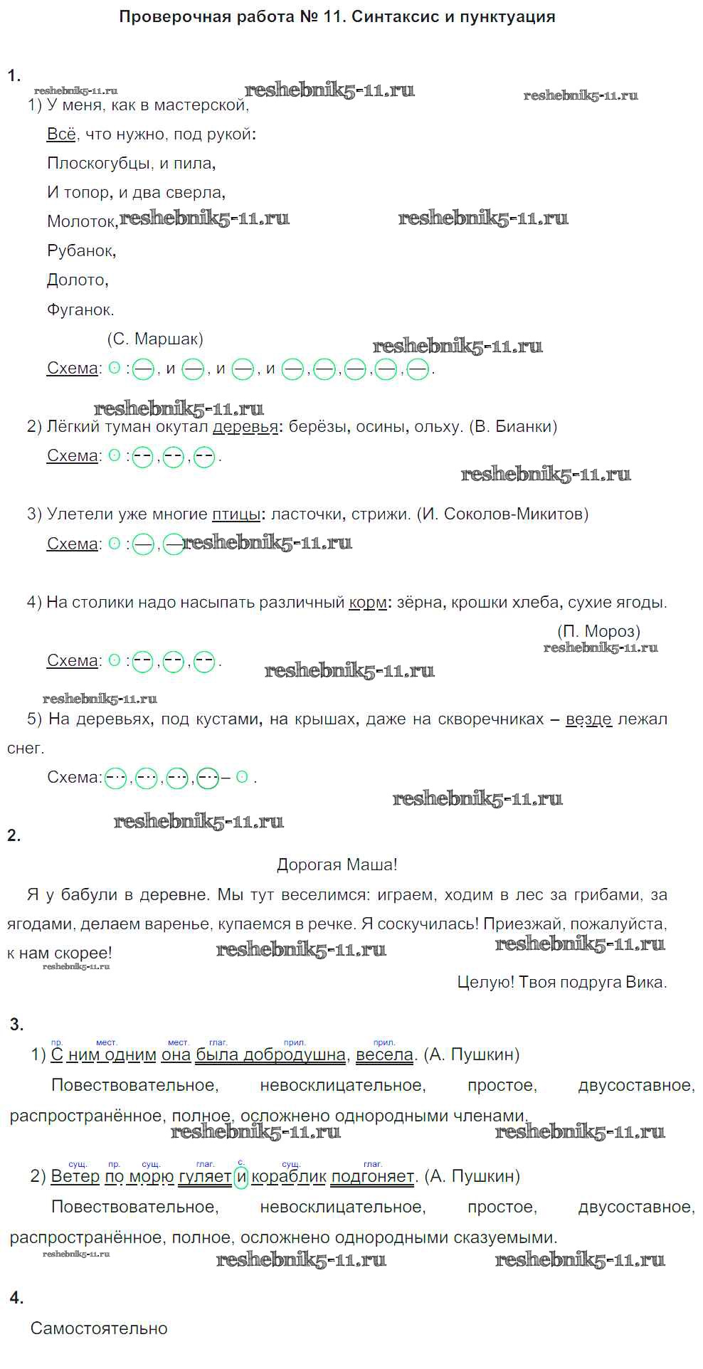 Готовая домашняя работа с ответами по Русскому языку за 5 класс Львов Тетрадь для оценки качества знаний Дрофа 2014 ФГОС - Проверочные работы 11