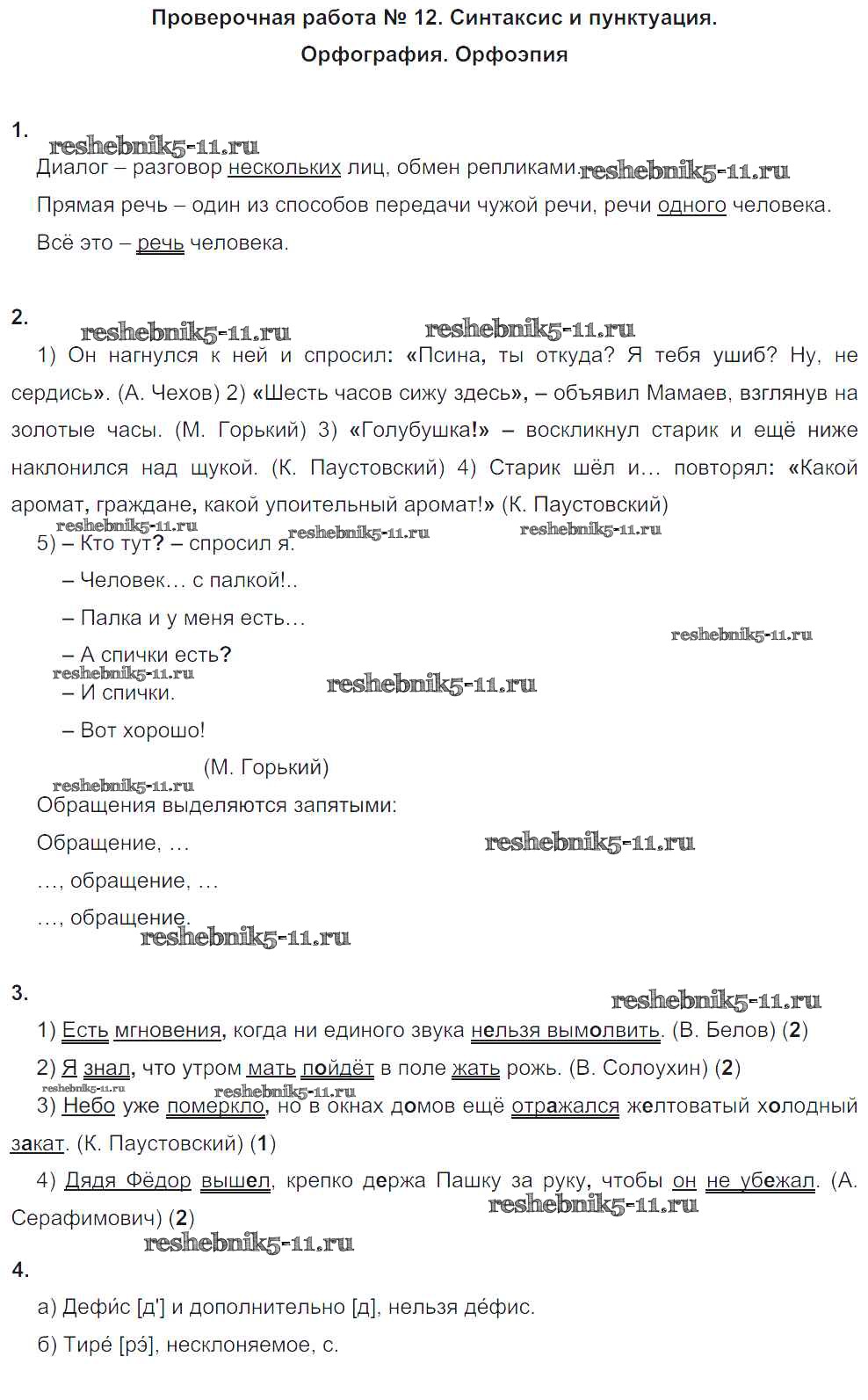 Готовая домашняя работа с ответами по Русскому языку за 5 класс Львов Тетрадь для оценки качества знаний Дрофа 2014 ФГОС - Проверочные работы 12