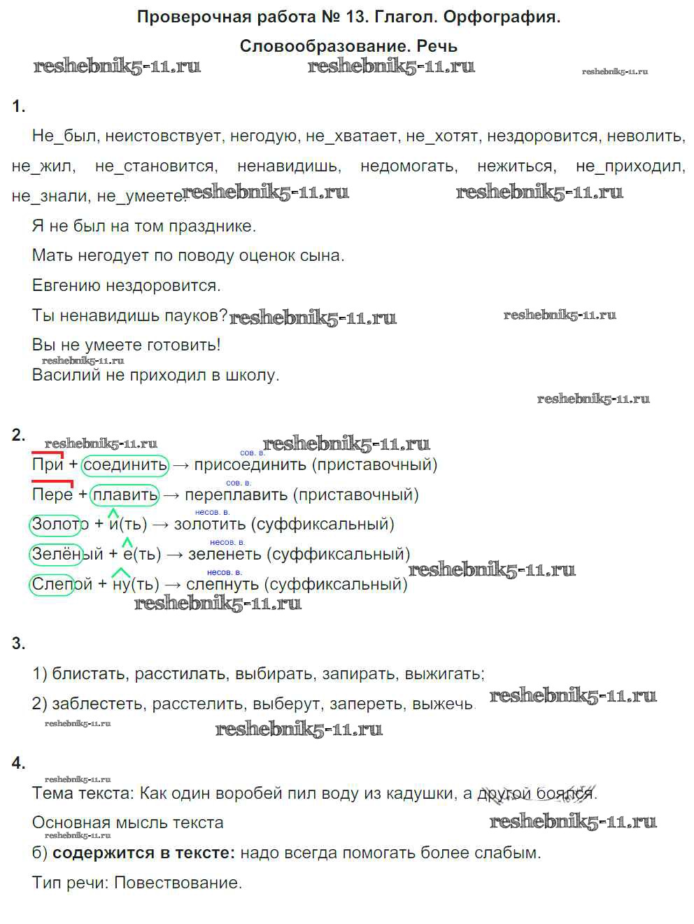 Готовая домашняя работа с ответами по Русскому языку за 5 класс Львов Тетрадь для оценки качества знаний Дрофа 2014 ФГОС - Проверочные работы 13