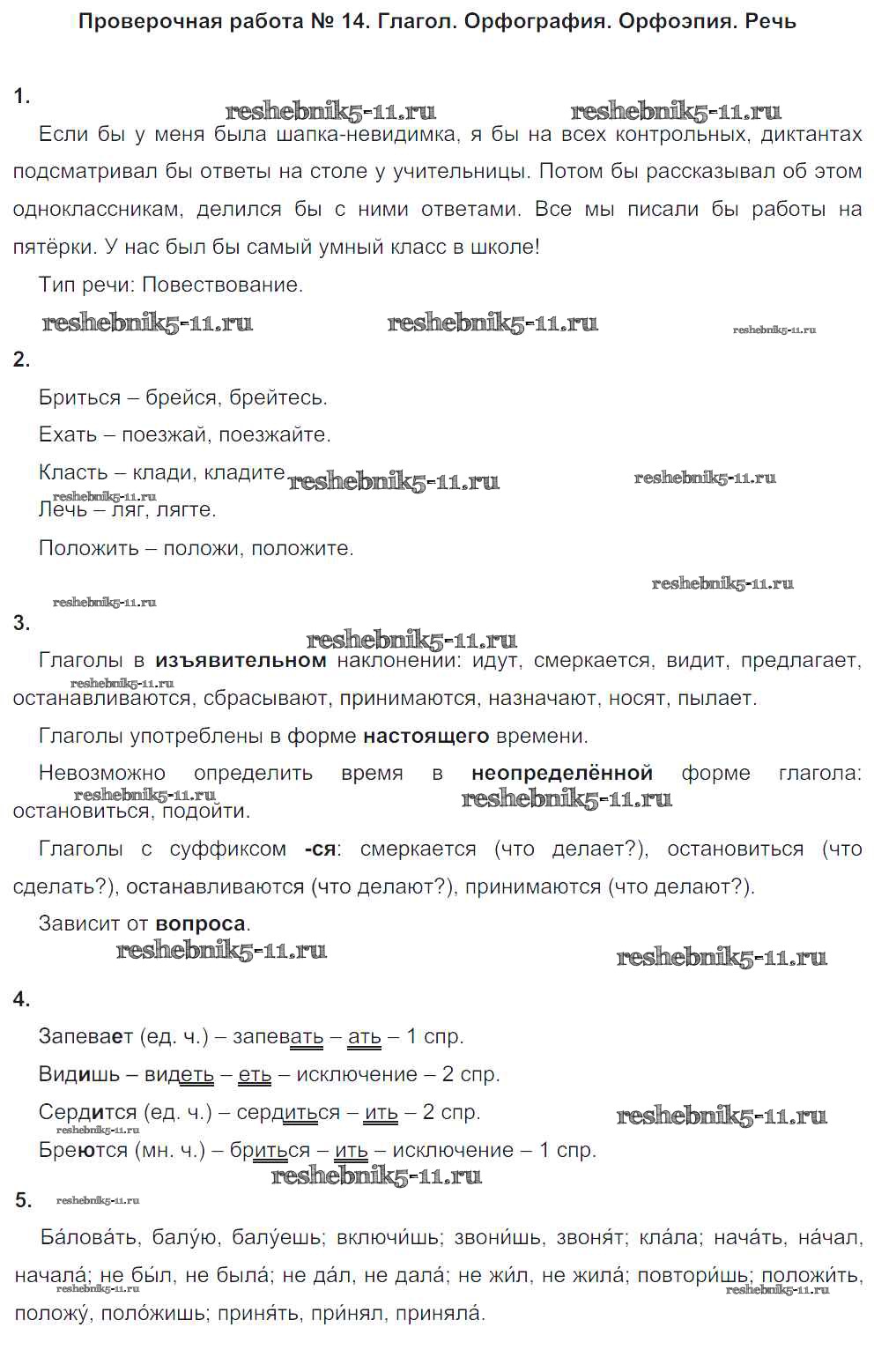 Готовая домашняя работа с ответами по Русскому языку за 5 класс Львов Тетрадь для оценки качества знаний Дрофа 2014 ФГОС - Проверочные работы 14