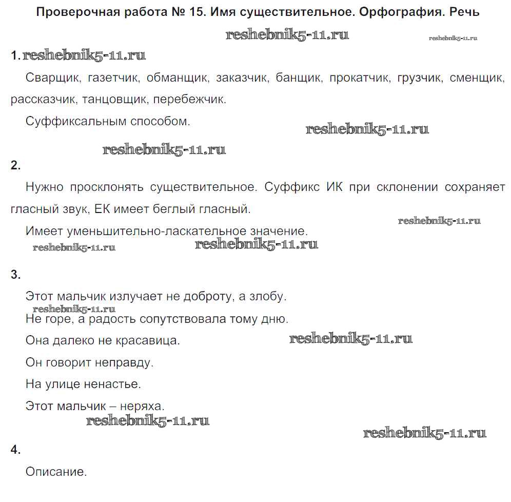 Готовая домашняя работа с ответами по Русскому языку за 5 класс Львов Тетрадь для оценки качества знаний Дрофа 2014 ФГОС - Проверочные работы 15