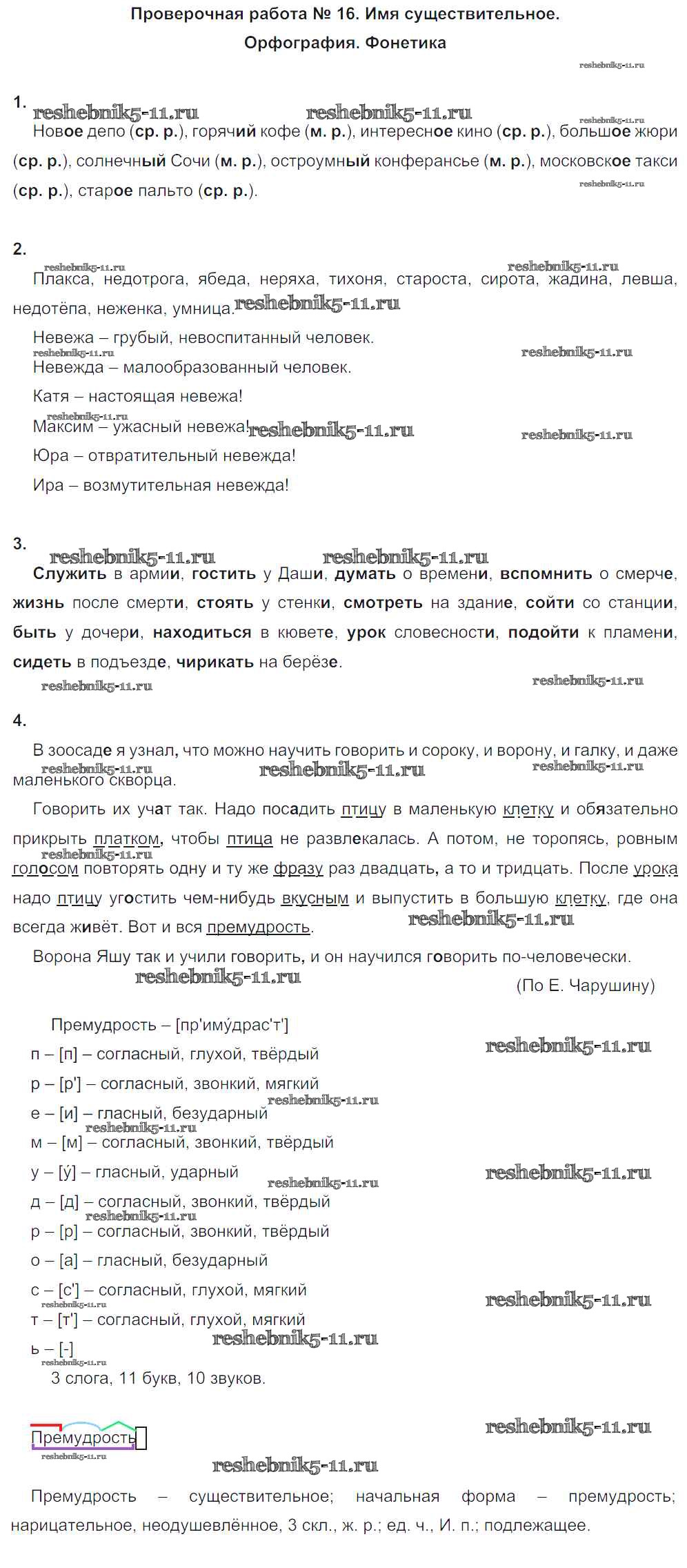 Готовая домашняя работа с ответами по Русскому языку за 5 класс Львов Тетрадь для оценки качества знаний Дрофа 2014 ФГОС - Проверочные работы 16
