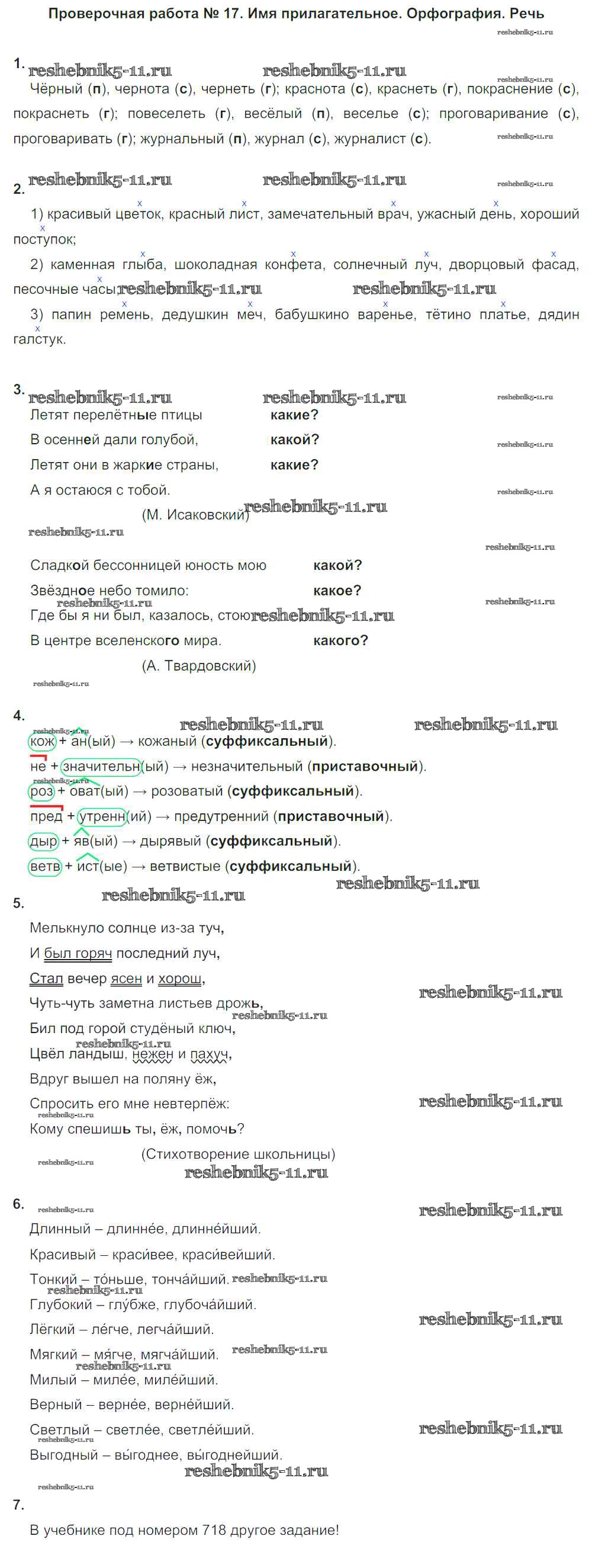 Готовая домашняя работа с ответами по Русскому языку за 5 класс Львов Тетрадь для оценки качества знаний Дрофа 2014 ФГОС - Проверочные работы 17