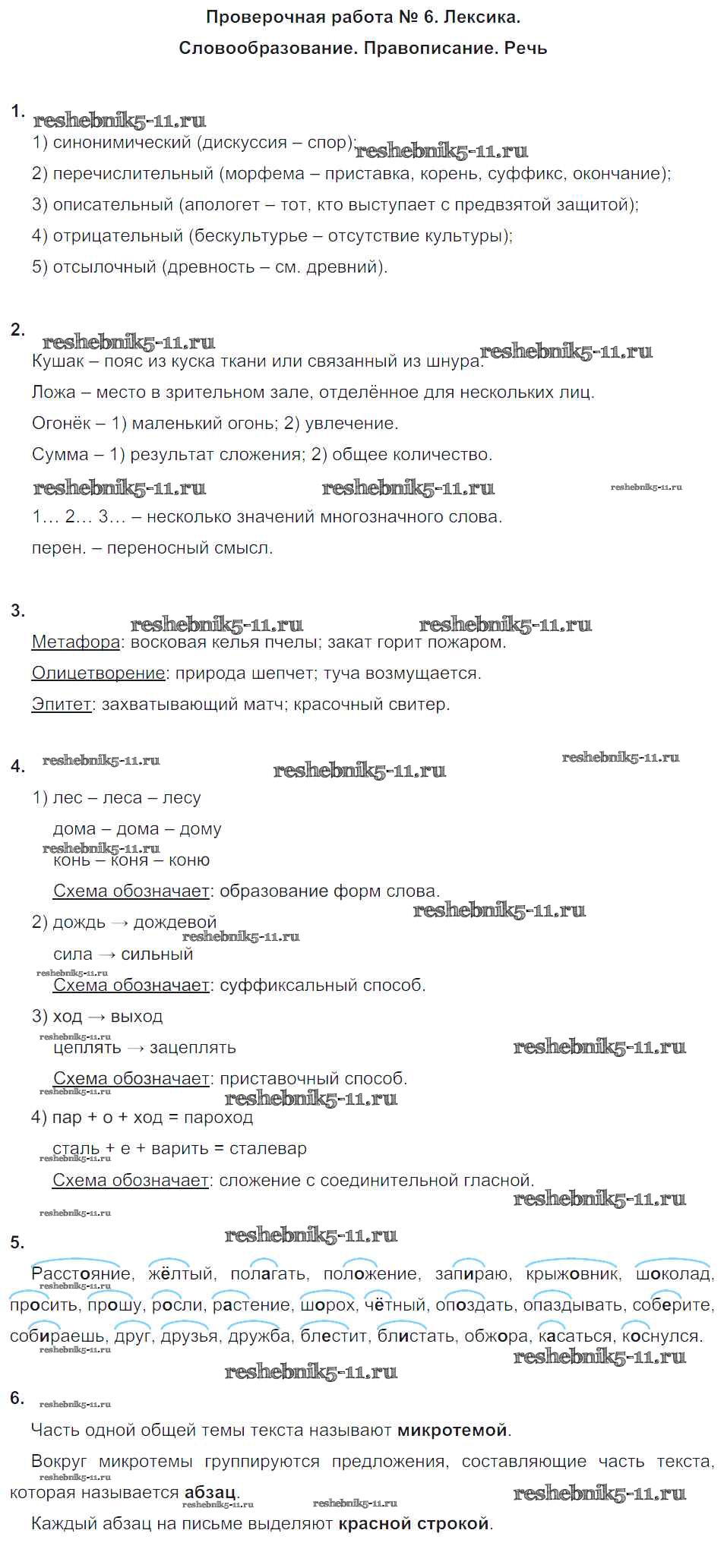 Готовая домашняя работа с ответами по Русскому языку за 5 класс Львов Тетрадь для оценки качества знаний Дрофа 2014 ФГОС - Проверочные работы 6