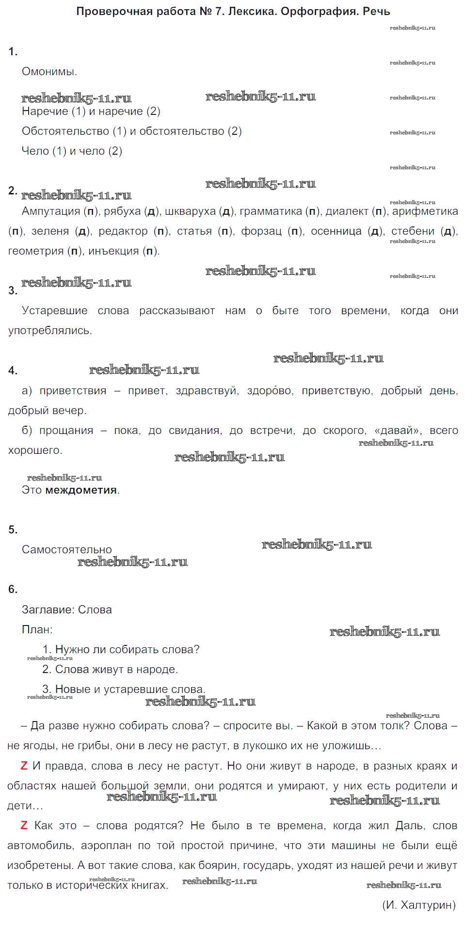 Готовая домашняя работа с ответами по Русскому языку за 5 класс Львов Тетрадь для оценки качества знаний Дрофа 2014 ФГОС - Проверочные работы 7