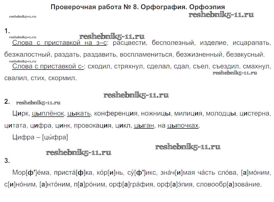 Готовая домашняя работа с ответами по Русскому языку за 5 класс Львов Тетрадь для оценки качества знаний Дрофа 2014 ФГОС - Проверочные работы 8