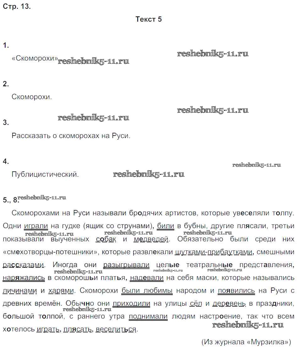 Готовая домашняя работа с ответами по Русскому языку за 5 класс Малюшкин Рабочая тетрадь Сфера 2019 ФГОС - Страницы 13