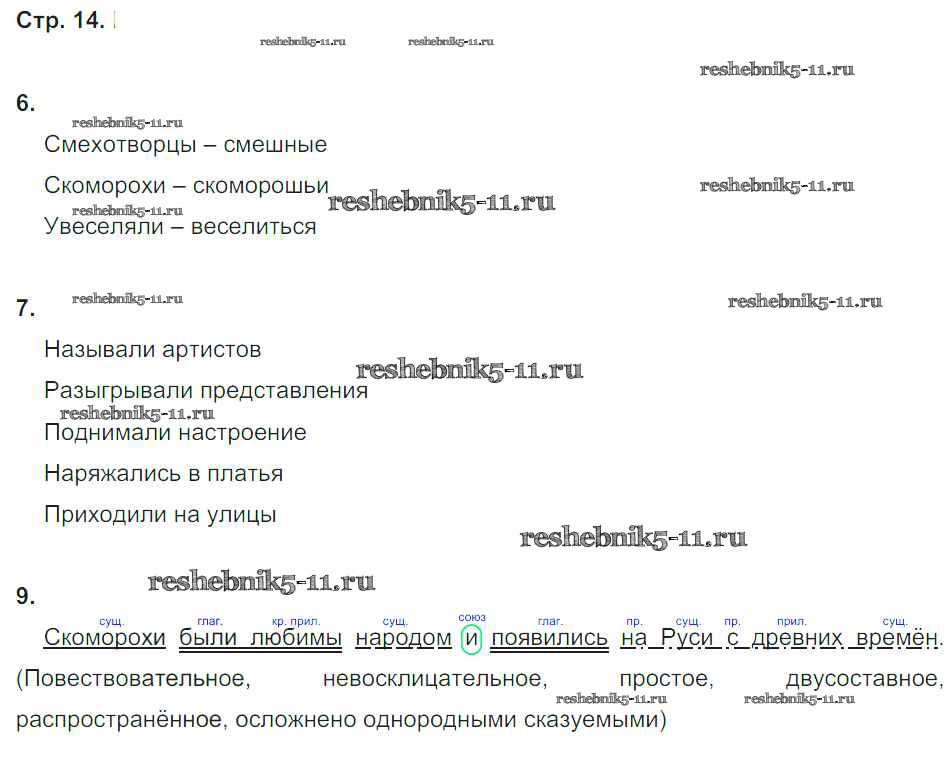Готовая домашняя работа с ответами по Русскому языку за 5 класс Малюшкин Рабочая тетрадь Сфера 2019 ФГОС - Страницы 14