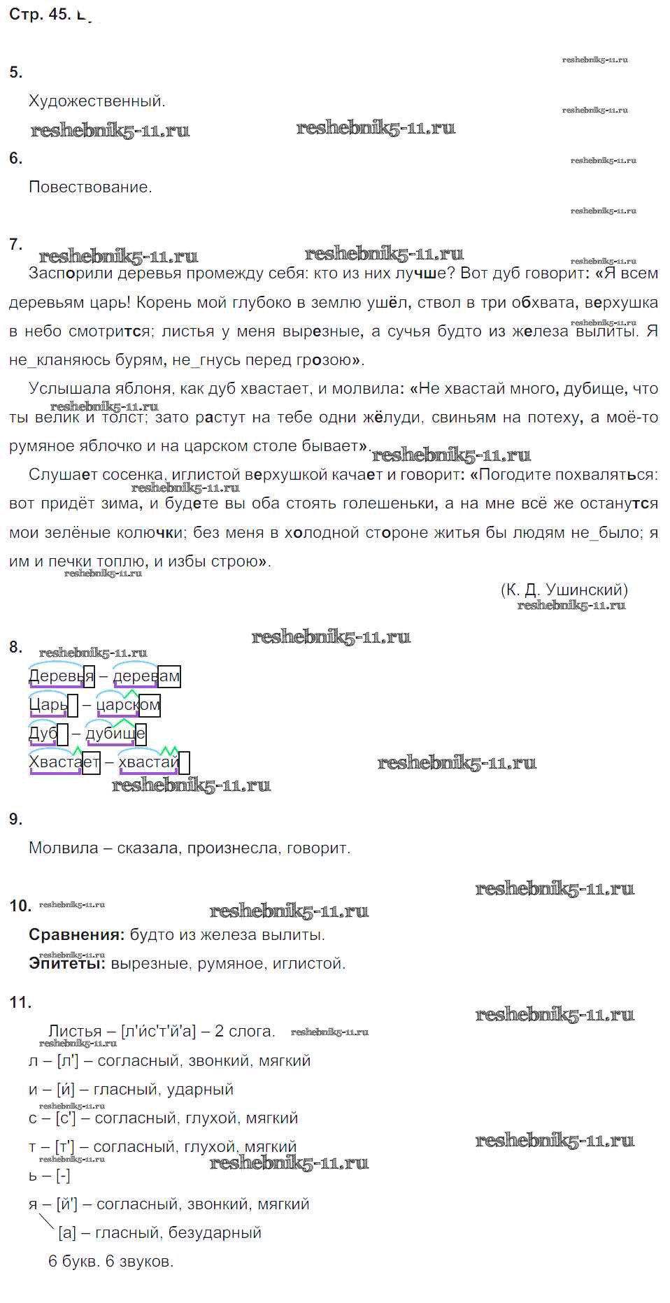 Готовая домашняя работа с ответами по Русскому языку за 5 класс Малюшкин Рабочая тетрадь Сфера 2019 ФГОС - Страницы 45
