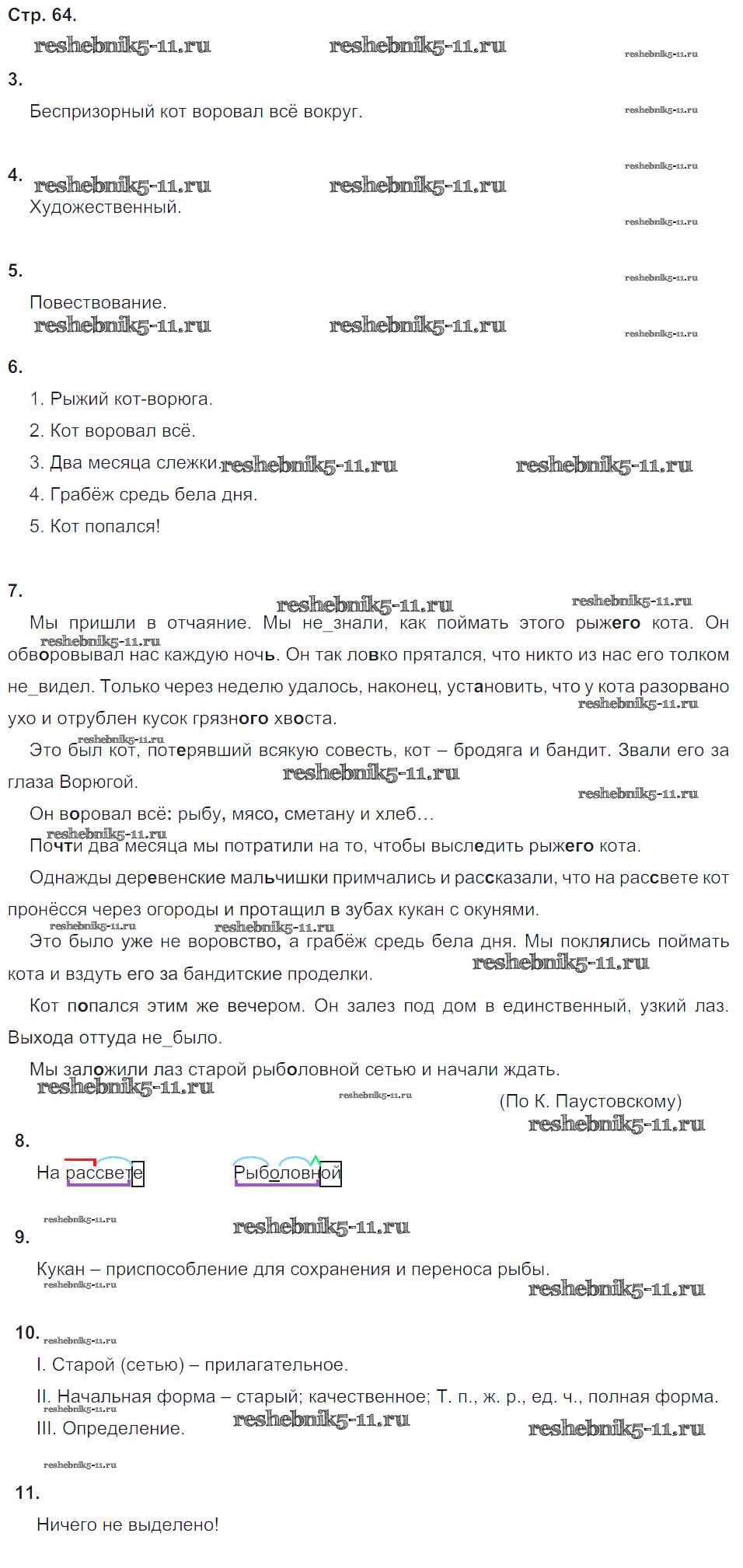Готовая домашняя работа с ответами по Русскому языку за 5 класс Малюшкин Рабочая тетрадь Сфера 2019 ФГОС - Страницы 64