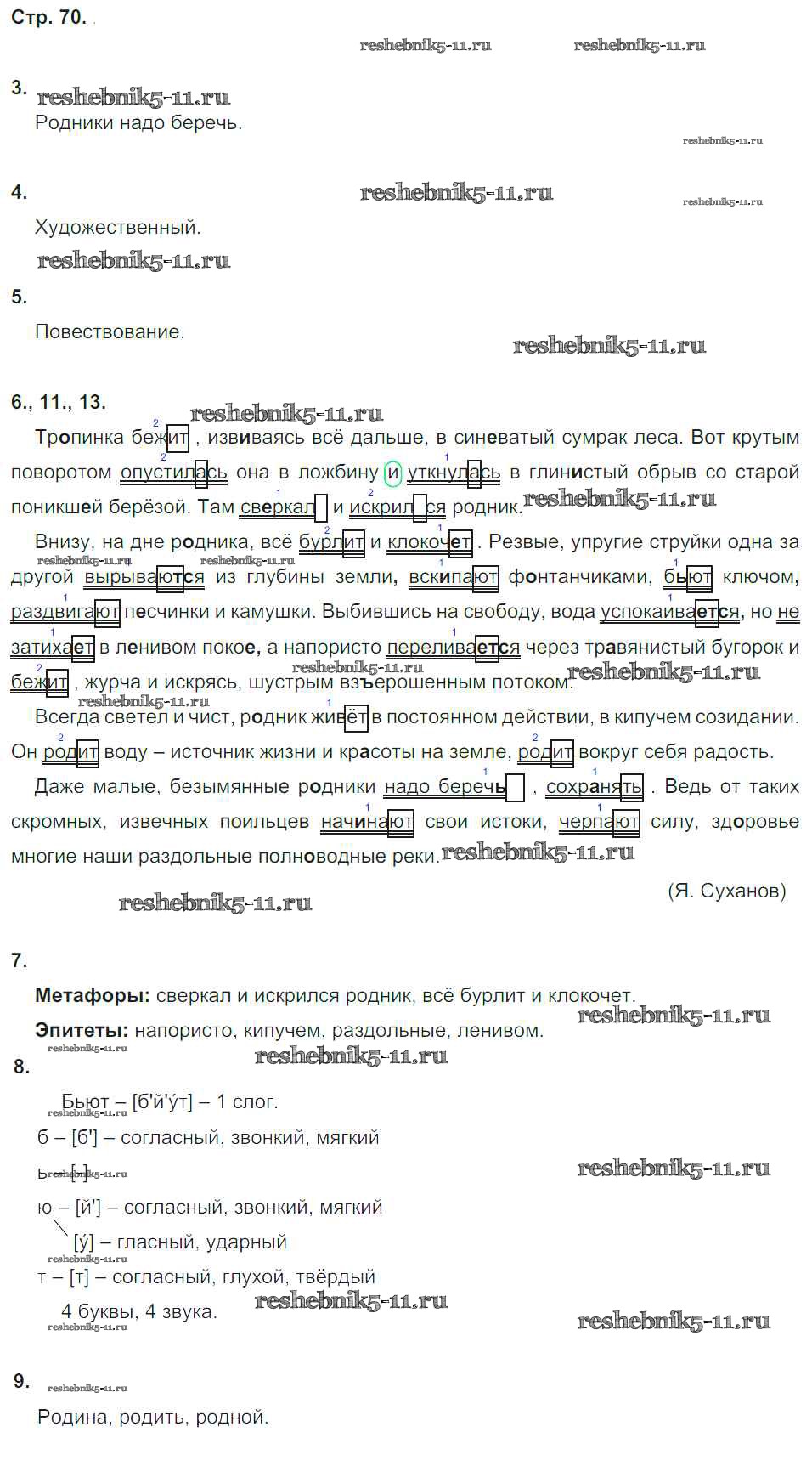 Готовая домашняя работа с ответами по Русскому языку за 5 класс Малюшкин Рабочая тетрадь Сфера 2019 ФГОС - Страницы 70