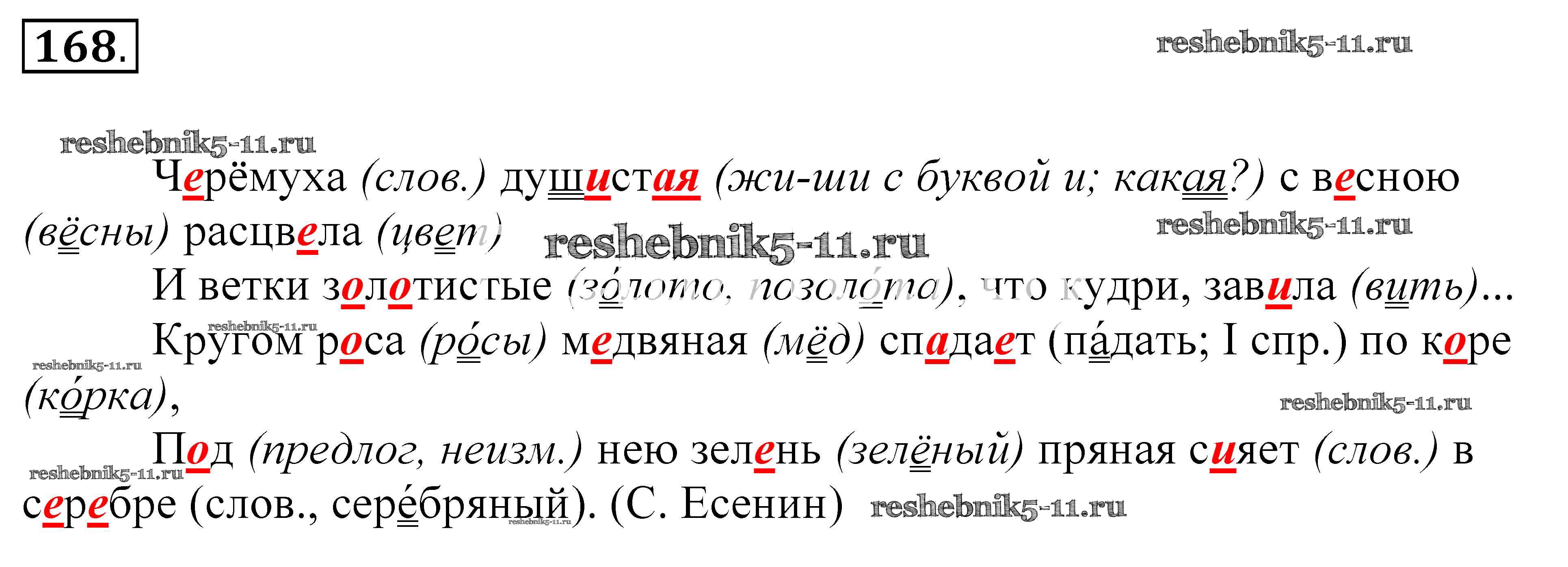 Готовая домашняя работа с ответами по Русскому языку за 5 класс Купалова, Еремеева, Лидман-Орлова Учебник Дрофа 2015 ФГОС - Упражнения 168