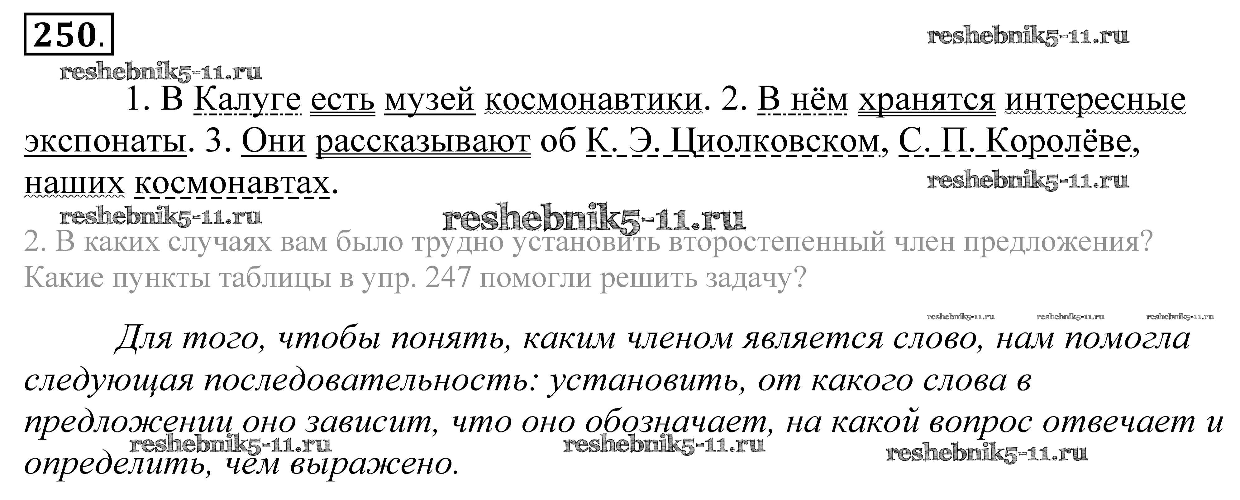 Готовая домашняя работа с ответами по Русскому языку за 5 класс Купалова, Еремеева, Лидман-Орлова Учебник Дрофа 2015 ФГОС - Упражнения 250