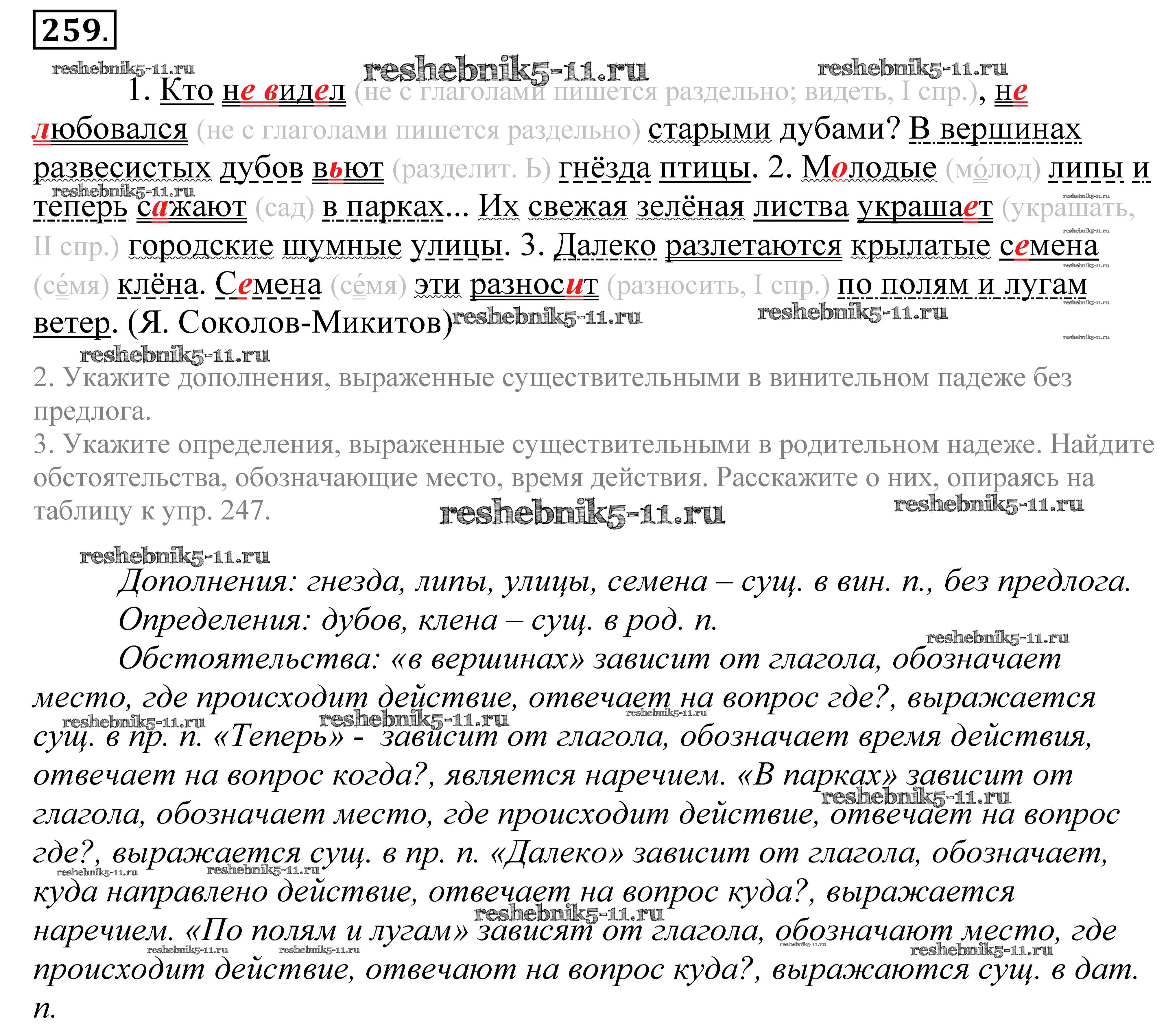 Готовая домашняя работа с ответами по Русскому языку за 5 класс Купалова, Еремеева, Лидман-Орлова Учебник Дрофа 2015 ФГОС - Упражнения 259