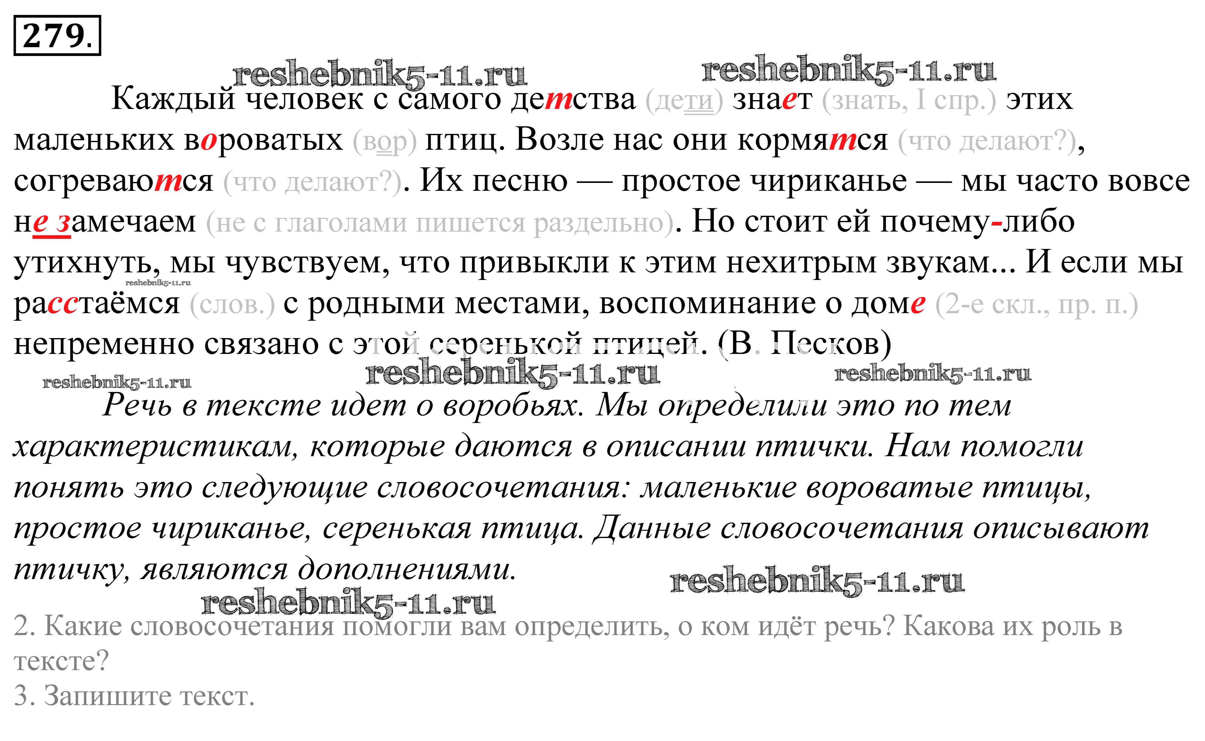 Готовая домашняя работа с ответами по Русскому языку за 5 класс Купалова, Еремеева, Лидман-Орлова Учебник Дрофа 2015 ФГОС - Упражнения 279