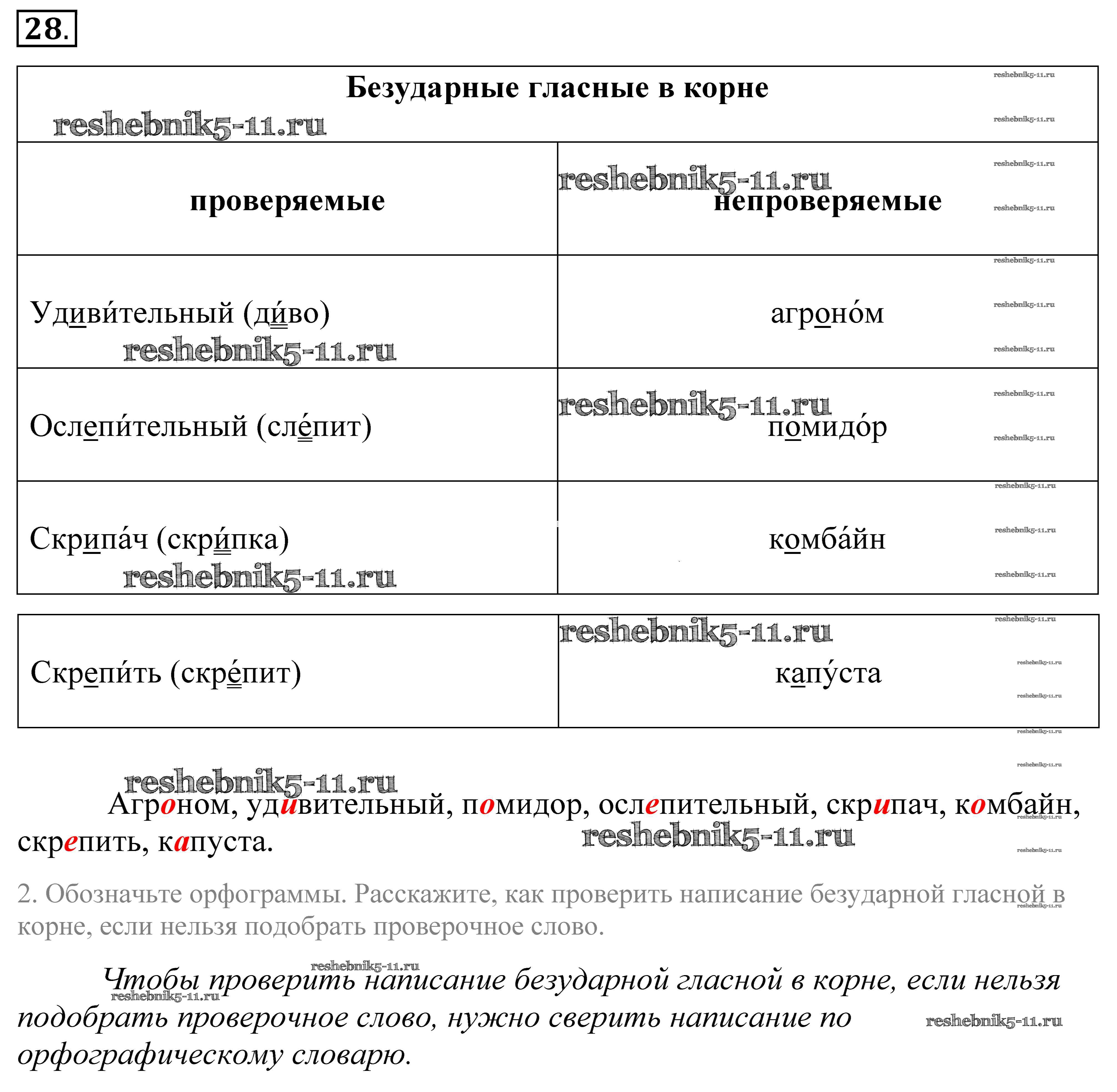 Готовая домашняя работа с ответами по Русскому языку за 5 класс Купалова, Еремеева, Лидман-Орлова Учебник Дрофа 2015 ФГОС - Упражнения 28