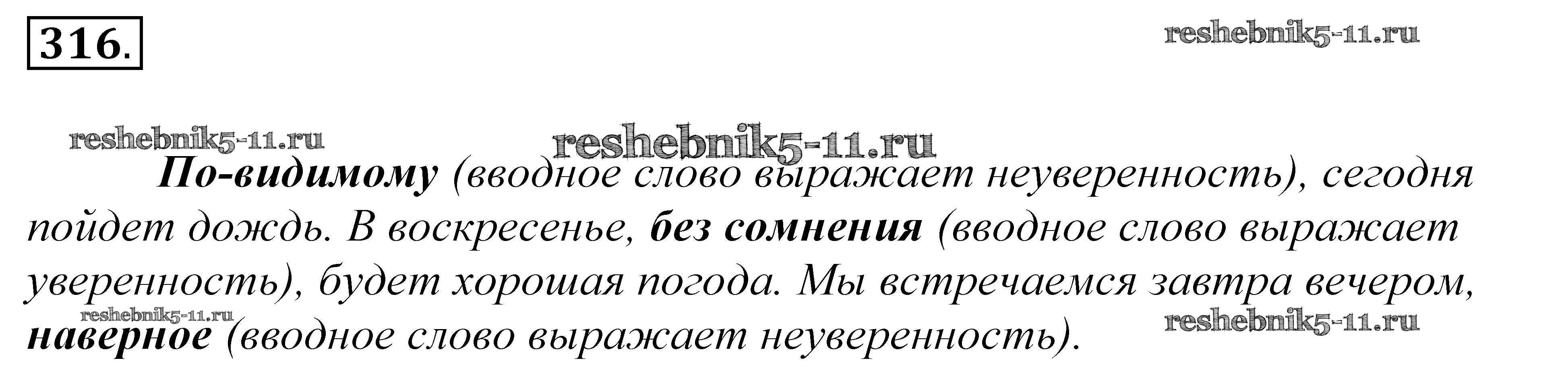 Готовая домашняя работа с ответами по Русскому языку за 5 класс Купалова, Еремеева, Лидман-Орлова Учебник Дрофа 2015 ФГОС - Упражнения 316