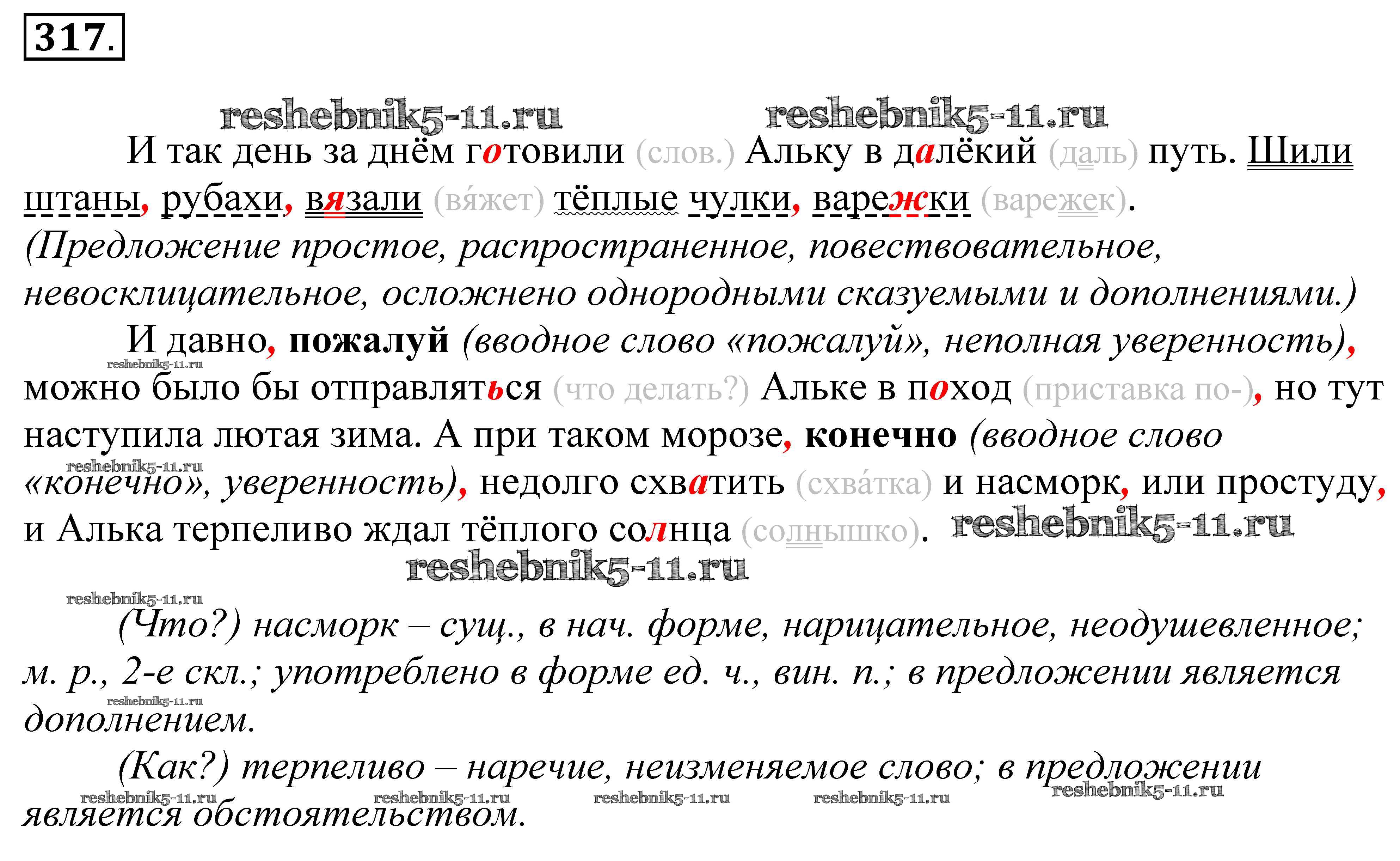 Готовая домашняя работа с ответами по Русскому языку за 5 класс Купалова, Еремеева, Лидман-Орлова Учебник Дрофа 2015 ФГОС - Упражнения 317
