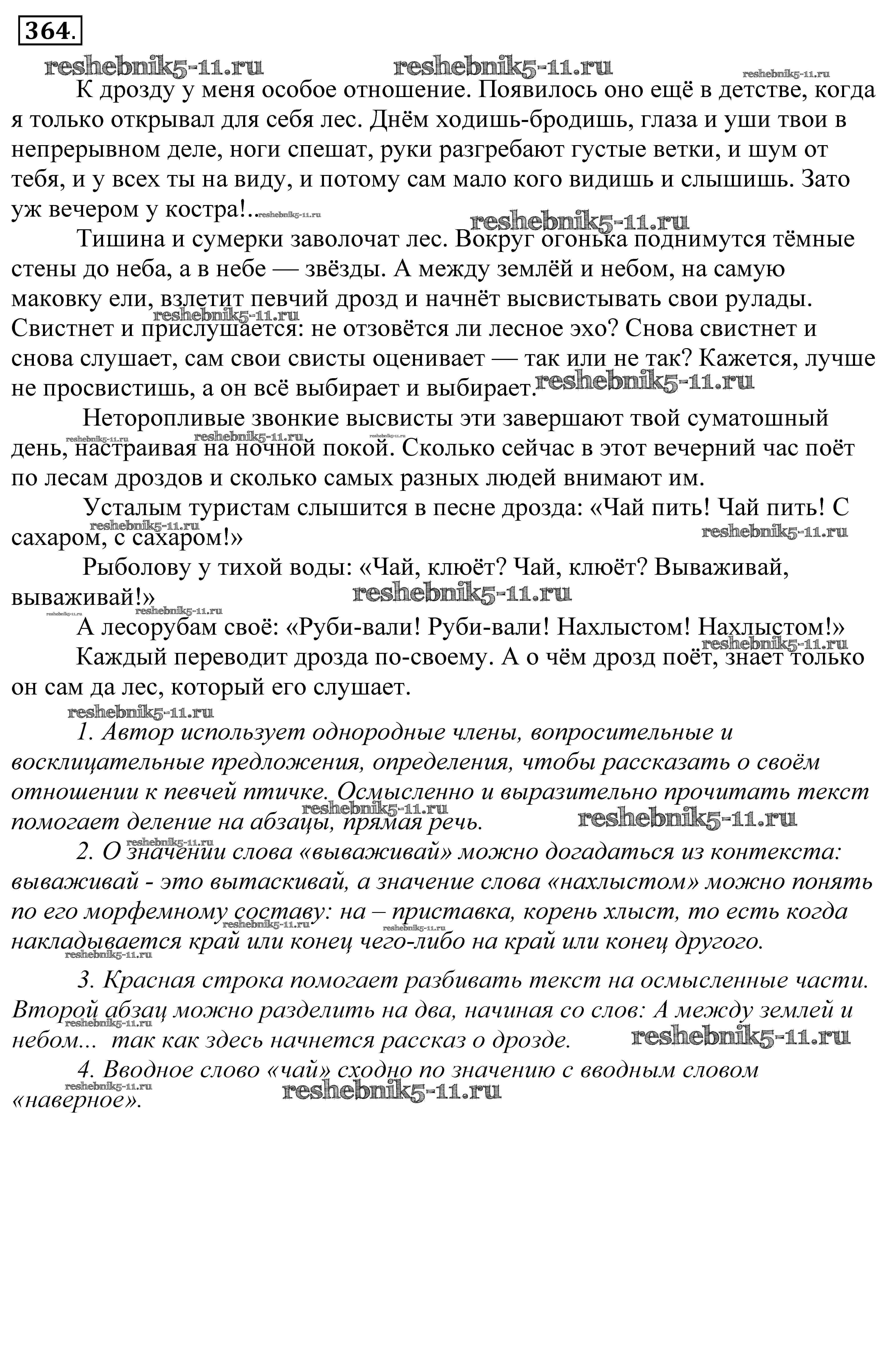 Готовая домашняя работа с ответами по Русскому языку за 5 класс Купалова, Еремеева, Лидман-Орлова Учебник Дрофа 2015 ФГОС - Упражнения 364