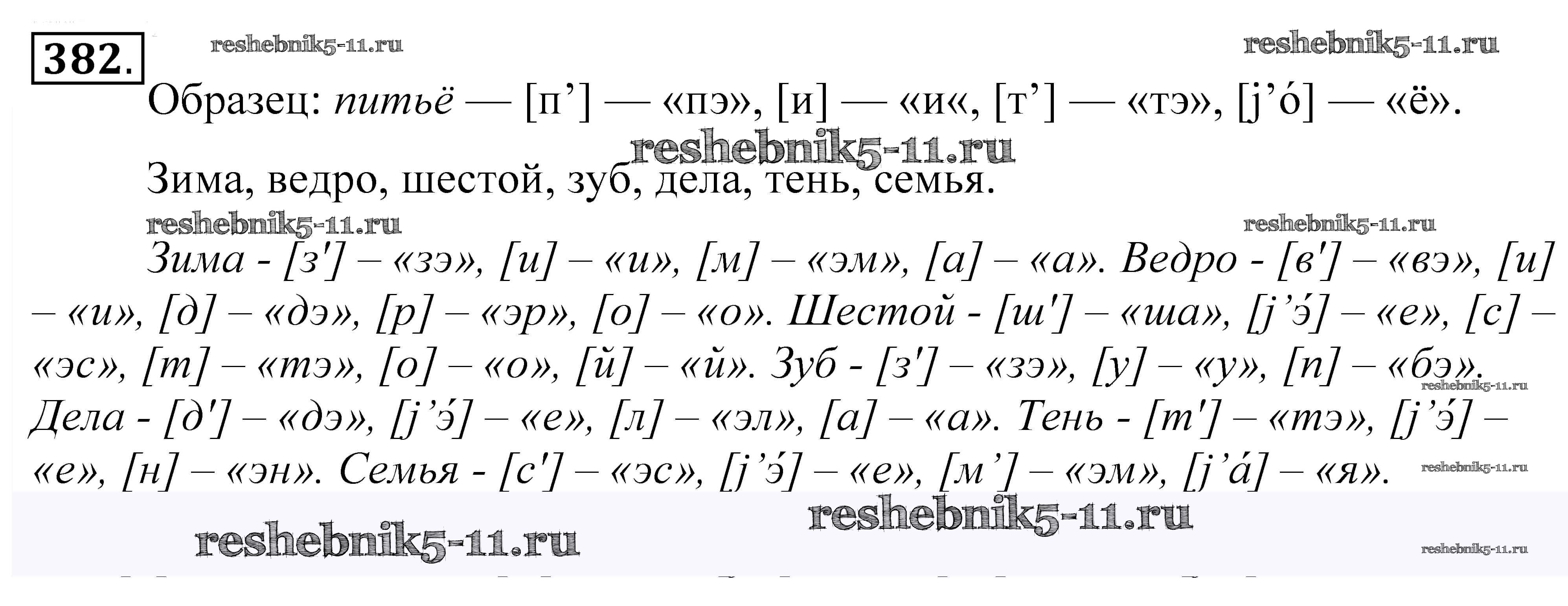 Готовая домашняя работа с ответами по Русскому языку за 5 класс Купалова, Еремеева, Лидман-Орлова Учебник Дрофа 2015 ФГОС - Упражнения 382