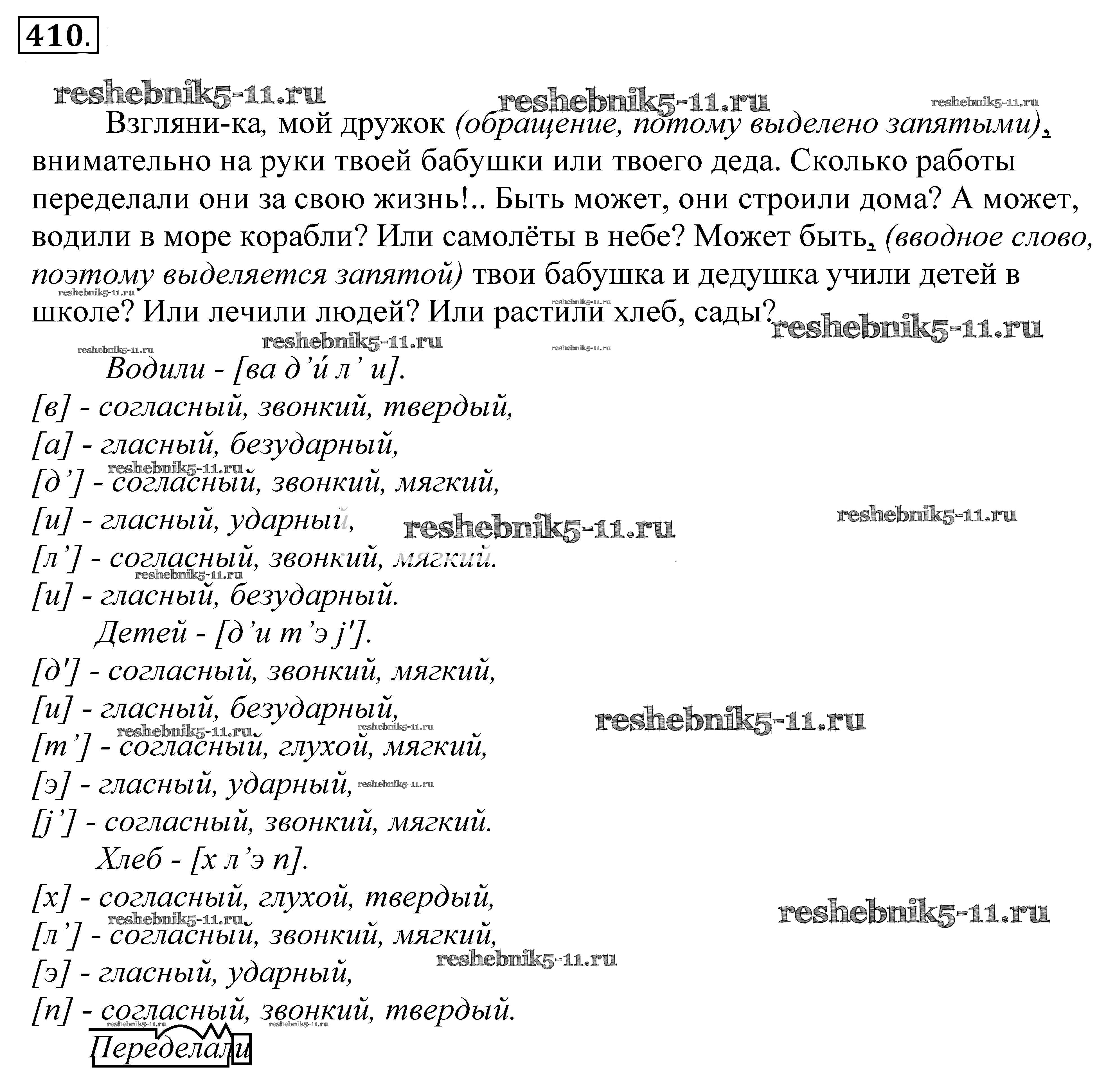 Готовая домашняя работа с ответами по Русскому языку за 5 класс Купалова, Еремеева, Лидман-Орлова Учебник Дрофа 2015 ФГОС - Упражнения 410